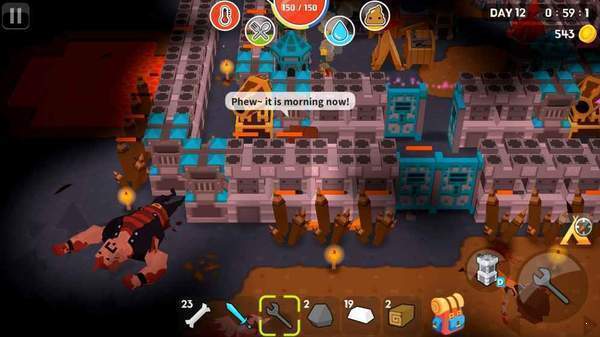 3、可以用各种物品来建造自己的安全据点,防止僵尸的偷袭,并用武器消灭掉。