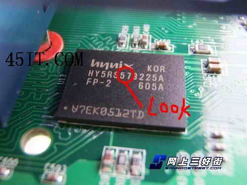 在来看看另一种非常常见的现代显存,同三星有些不同的是,现代要看第6、7位数字,根据上面的计算公式得出的结论是:64、66表示64Mbit(8MB/颗),28=128Mbit(16MB/颗),56、57=256Mbit(32MB/颗),12=512Mbit(64MB/颗),那么这颗显存的容量就是32MB/颗。 ]