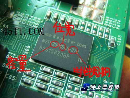 注意今天的第一个计算公式:显存的容量=显存Mbit/8,也就是说大家看到的这颗显存的容量是256Mbit/8=32MB/颗